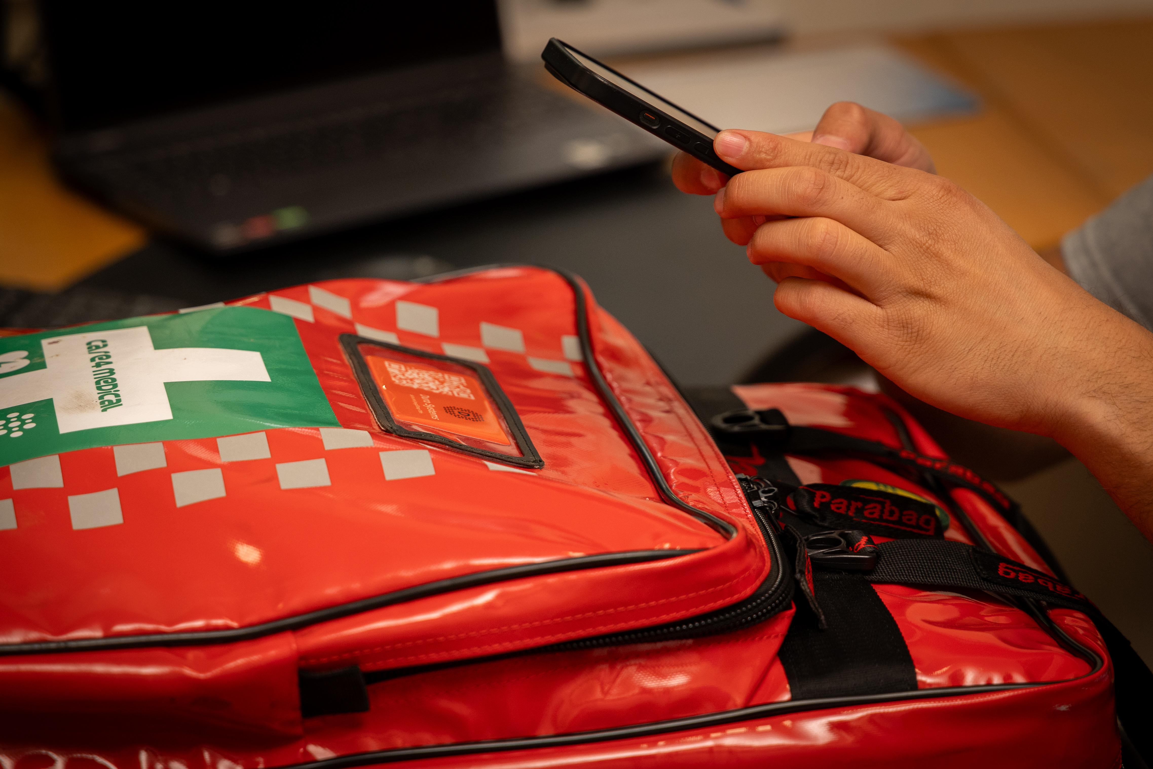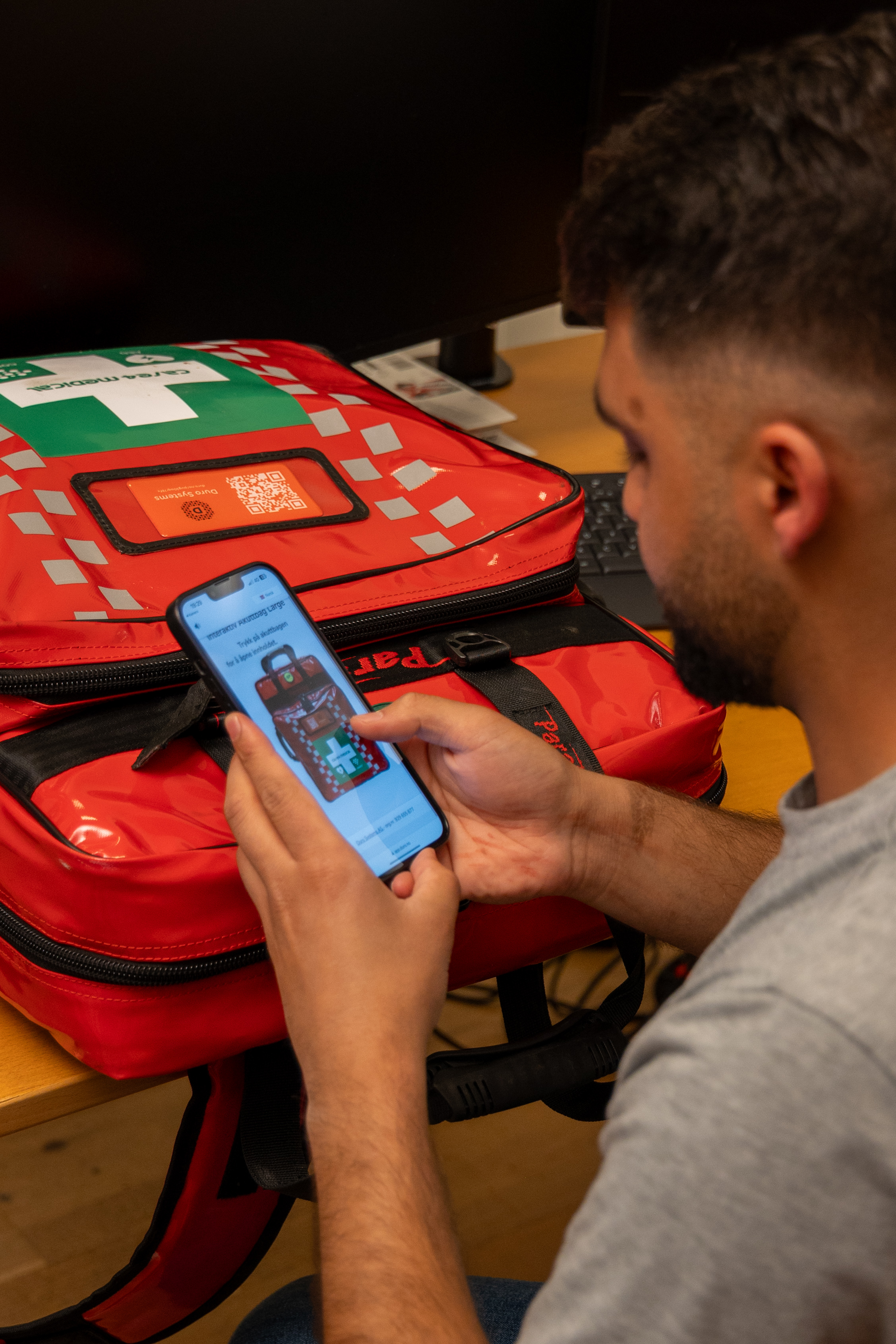 Akuttsekk Connect+ er en solid og brukervennlig ryggsekk fylt med nøye utvalgt førstehjelpsutstyr – organisert etter type skade. Skann QR-koden og få umiddelbar veiledning på ditt språk.